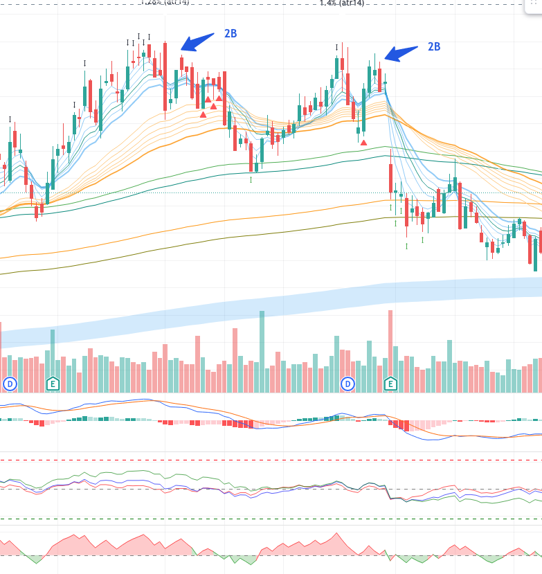 我们用TSM台积电在2021年1月14日~ 3月3日之间的经典2B走势感受: