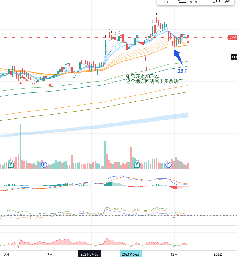 - MACD 快速的形成一个金叉,立刻又出现死叉。而且很明显,不像先前的金叉死叉非常模糊。